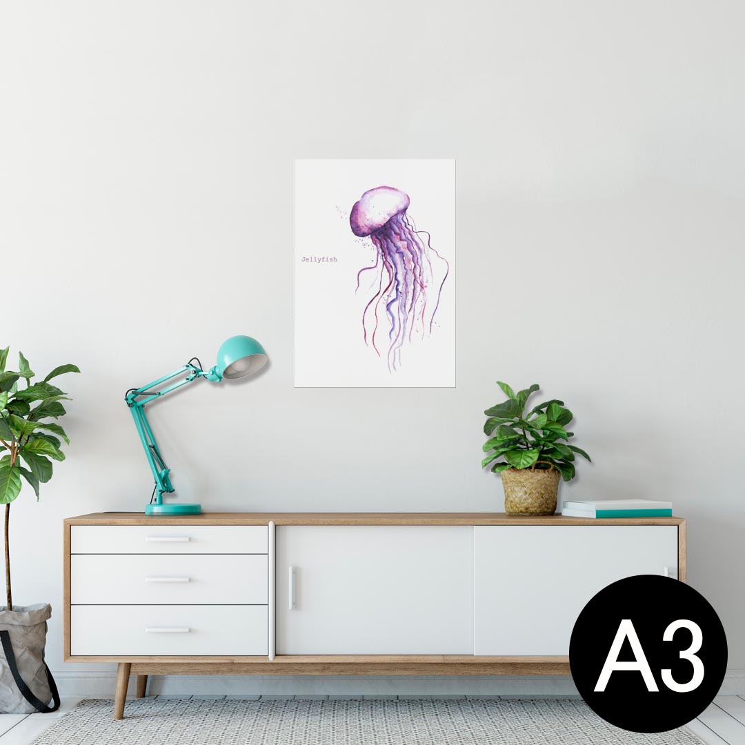 ポスター ウォールステッカー シール式ステッカー 飾り 297×420mm A3 写真 フォト 壁 インテリア おしゃれ 剥がせる wall sticker poster 010966 海 くらげ 紫
